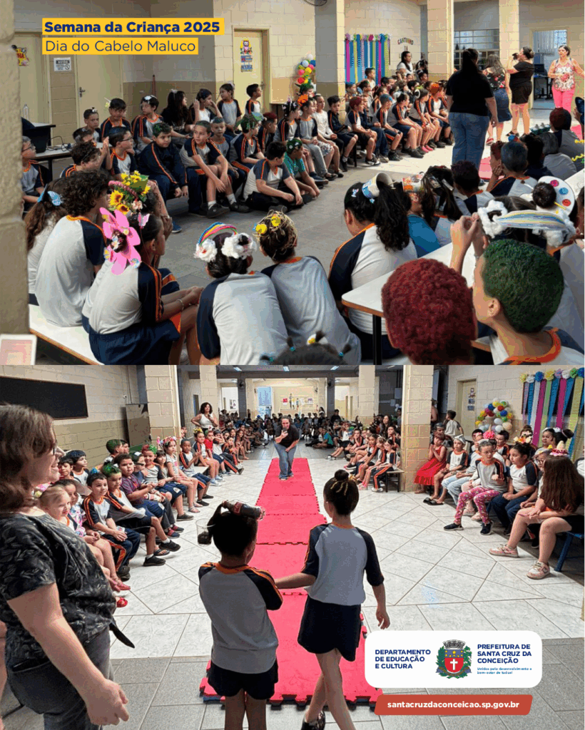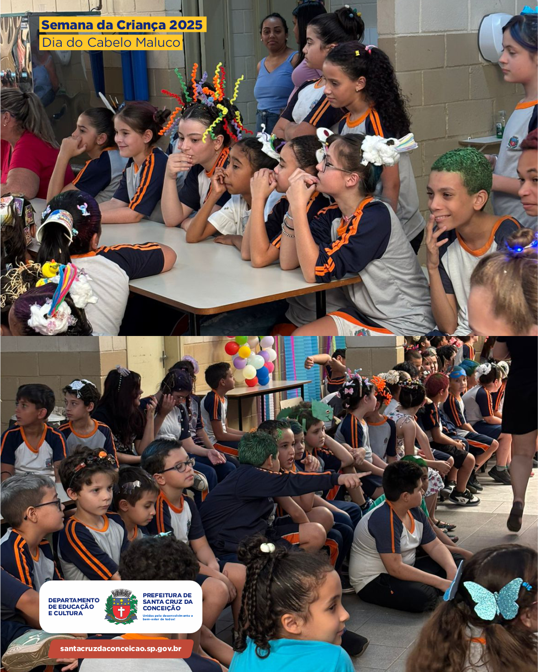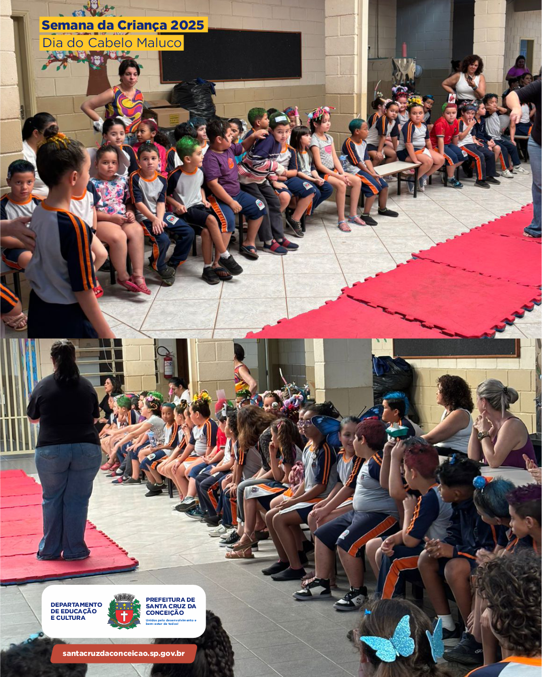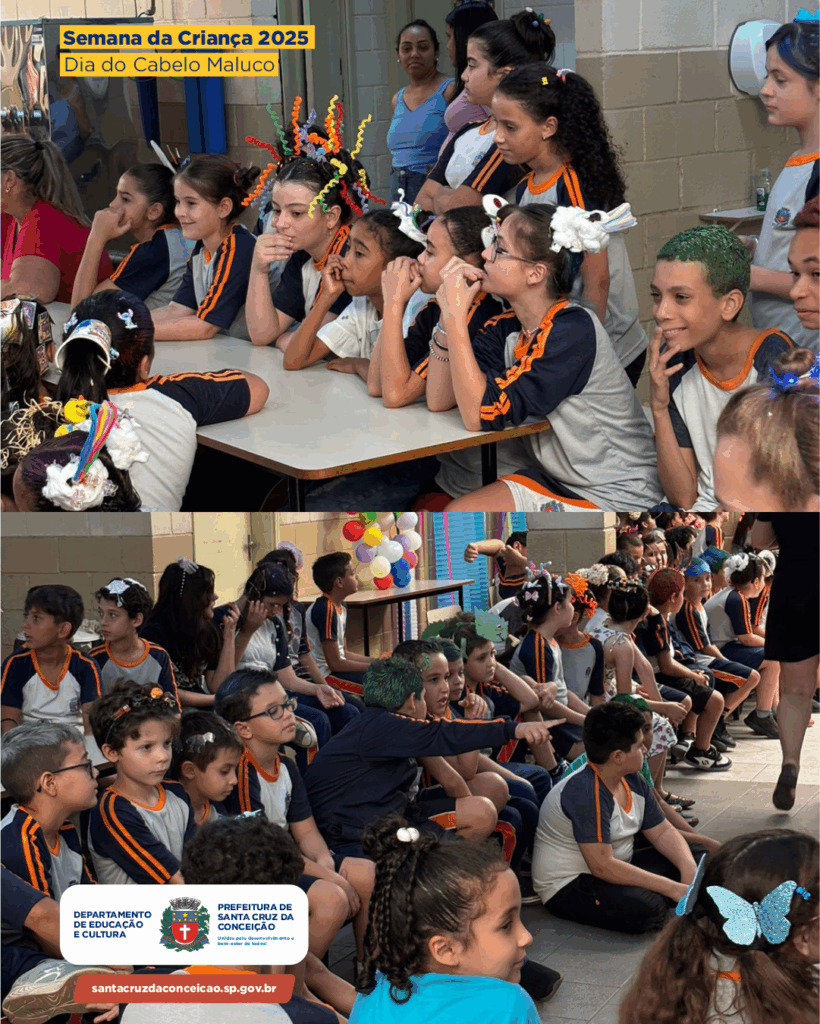 A Semana da Criança começou em clima de alegria e descontração nas escolas municipais de Santa Cruz da Conceição. Nesta segunda-feira, os alunos participaram do Dia do Cabelo Maluco, uma atividade que trouxe muita criatividade, diversão e risadas para dentro das salas de aula.